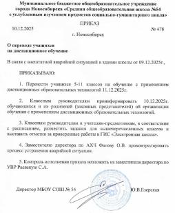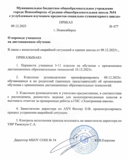 муниципальное бюджетное общеобразовательное учреждение города Новосибирска «Средняя общеобразовательная школа № 54 с углубленным изучением предметов социально-гуманитарного цикла»