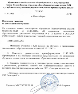 Перевести учащихся 5-11 классов на обучение с применением дистанционных образовательных технологий 10.12.2025 г.